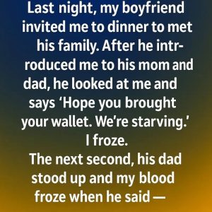 Last night, my boyfriend invited me to dinner to meet his family. As soon as he introduced me to his mom and dad, he looked at me…