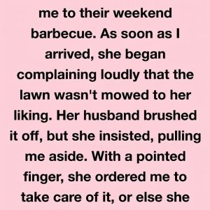 My boss’s wife, Karen, invited me to their weekend barbecue, but the moment I arrived she began complaining loudly that the lawn wasn’t mowed the way she…