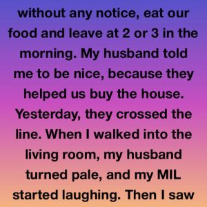 My in-laws have never believed in notice. They show up whenever they feel like it, let themselves in like they still own the place, eat whatever they…