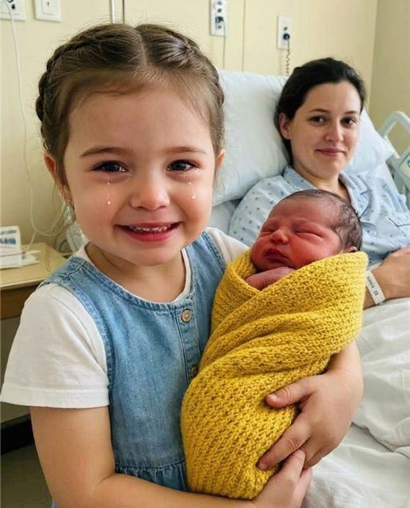 The hospital room was quiet in the fragile way only delivery rooms ever are, heavy with disinfectant and exhaustion and relief all tangled together. My body ached as if I had been taken apart and put back together incorrectly, but none of that mattered when I saw my four-year-old daughter climb carefully onto the bed. Lina looked impossibly small, her legs dangling, her hands shaking as the nurse settled her newborn sister into her lap. I had worried for months about jealousy and fear, about whether my first child would feel replaced. Instead, Lina cradled the baby with a seriousness that felt far older than her years, rocking gently, whispering soft sounds under her breath as if she had rehearsed this moment long before it arrived