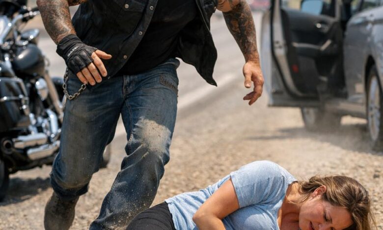 For nearly thirty minutes, drivers had been passing the same sight on the shoulder: a broad-shouldered man sitting astride an aging charcoal Harley-Davidson, engine idling in a low, uneven growl. Heat shimmered off the pavement, turning the horizon into a wavering blur. The biker’s name was Dylan Cross, though no one speeding past at seventy miles an hour knew that. They saw the tattoos on his forearms, the weathered leather vest stitched with faded patches, the heavy boots planted firmly on cracked asphalt.