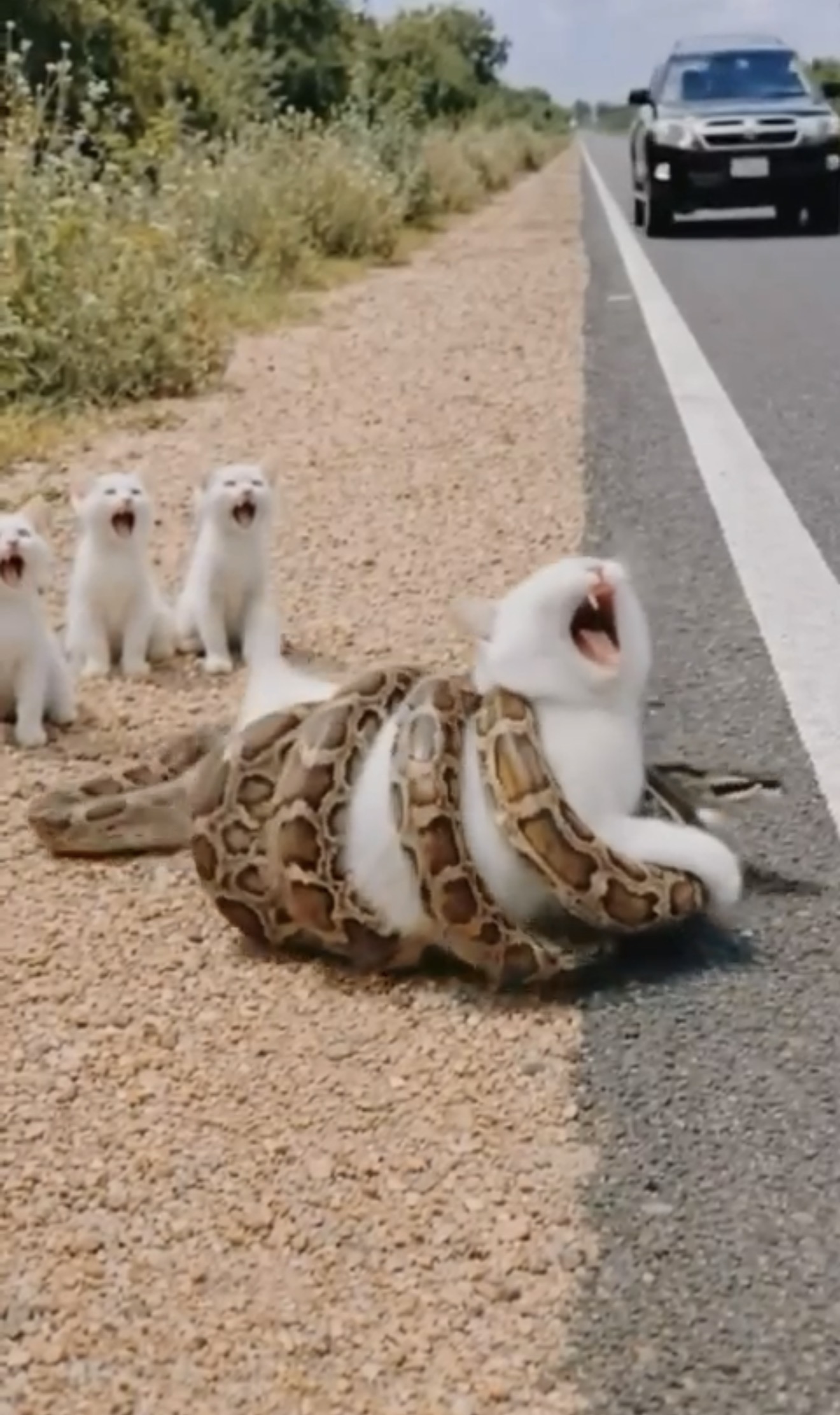 helpless cat from the clutches of an aggressive python.WATCH MORE BELOW..