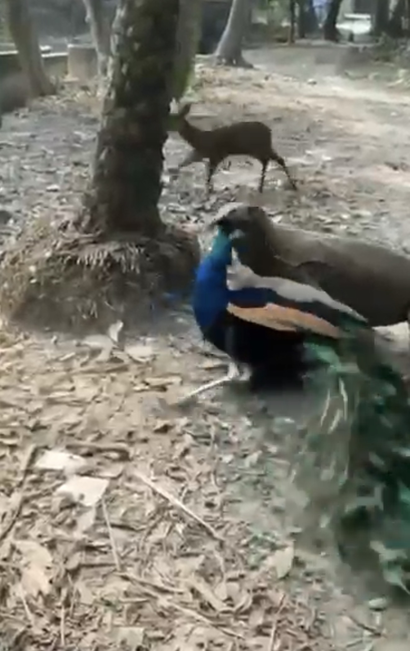 where a large monitor lizard was seen attacking a male peacock with its colorful feathers fully displayed. The predator appears to have grabbed the bird by the neck, while the peacock struggles to fight back.WATCH VIDEO BELOW..