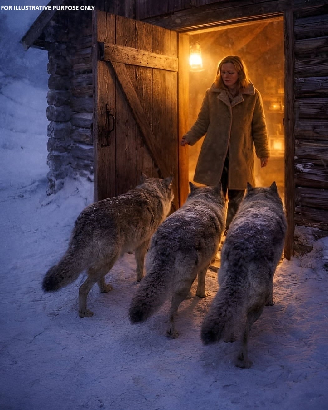 After my husband’s death, I moved into the old family house near the forest. The days were quiet, but at night the wind howled and strange sounds echoed from the trees. One stormy evening, four wolves appeared at my door, standing silently in the snow. They looked exhausted rather than threatening, so after a long hesitation, I let them inside to shelter from the cold.