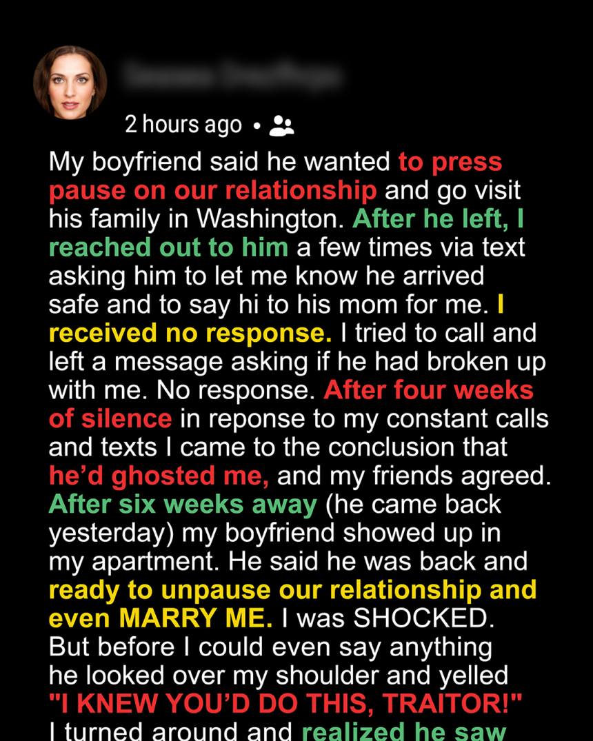 I never believed in “pausing” a relationship — it’s either on or off. But when Jack said he needed space to “work on himself,” I didn’t argue. Weeks passed with no replies to my texts or calls, and I realized he’d ghosted me.