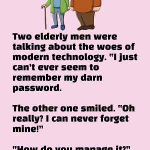 Two elderly men were talking about the woes of modern technology. “I just can’t ever seem to remember my darn password. The other one smiled. “Oh really?…