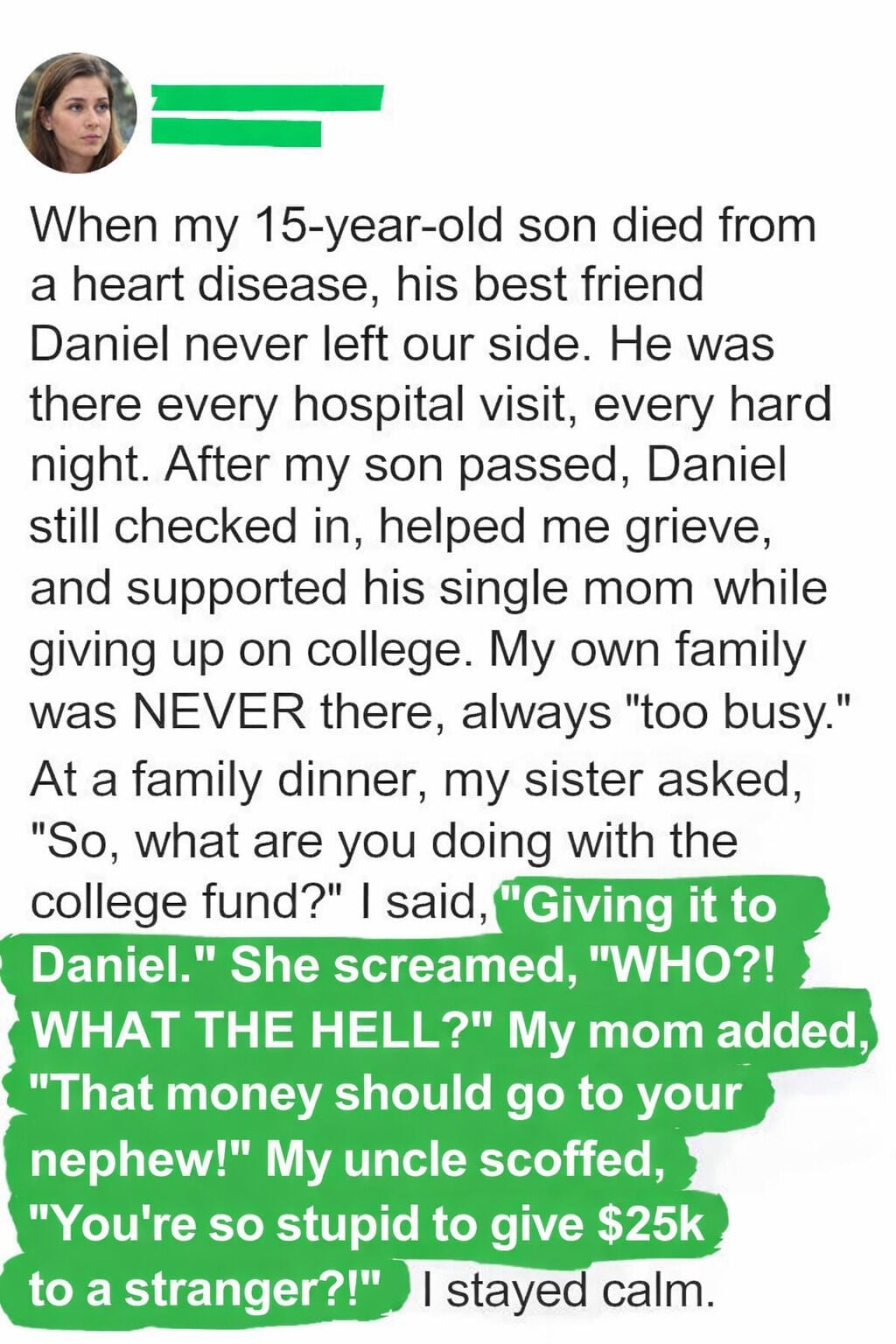 After losing my 15-year-old son Ben to a lifelong heart condition, I was consumed by grief. In his final days, he asked me to give his $25,000 college fund to Daniel, his best friend who never missed a hospital visit. I promised, never thinking I would truly have to follow through.