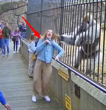 The footage, now viral, captures a moment of curiosity quickly turning into chaos. A woman leaned closer to a gorilla enclosure, drawn by the animal’s commanding presence. Despite barriers and clear signage designed to maintain a safe distance, the gorilla reached out, breaching the boundary between human and animal. The incident left onlookers stunned, prompting questions about whether it was simple negligence or a defensive response from the ape.