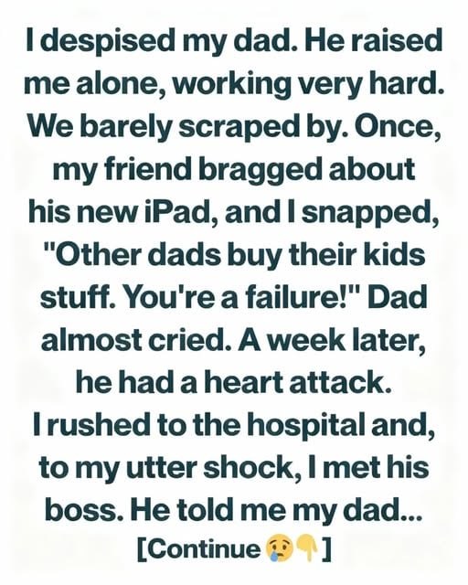 A week later, everything unraveled. My father suffered a heart attack, and I rushed to the hospital with fear twisting in my chest. While I waited, his boss approached me and began telling stories I had never heard—how my father was always first to arrive and last to leave, how he volunteered for extra shifts no one wanted, and how he had turned down better-paying jobs to remain present in my life. Each revelation chipped away at the version of my father I had held onto, replacing it with someone I barely recognized.