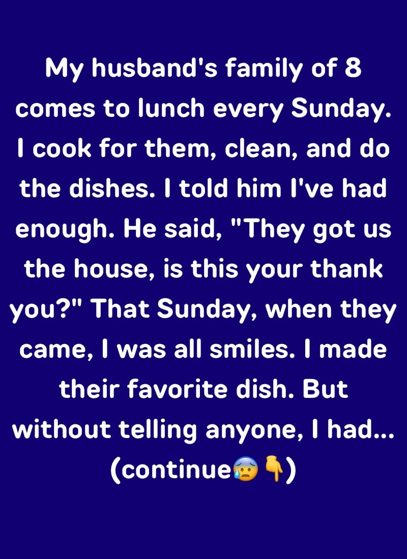 Feeling unappreciated, Kristin decided to make a point. One Sunday, she welcomed everyone warmly and served their favorite meal, acting as though everything was normal.