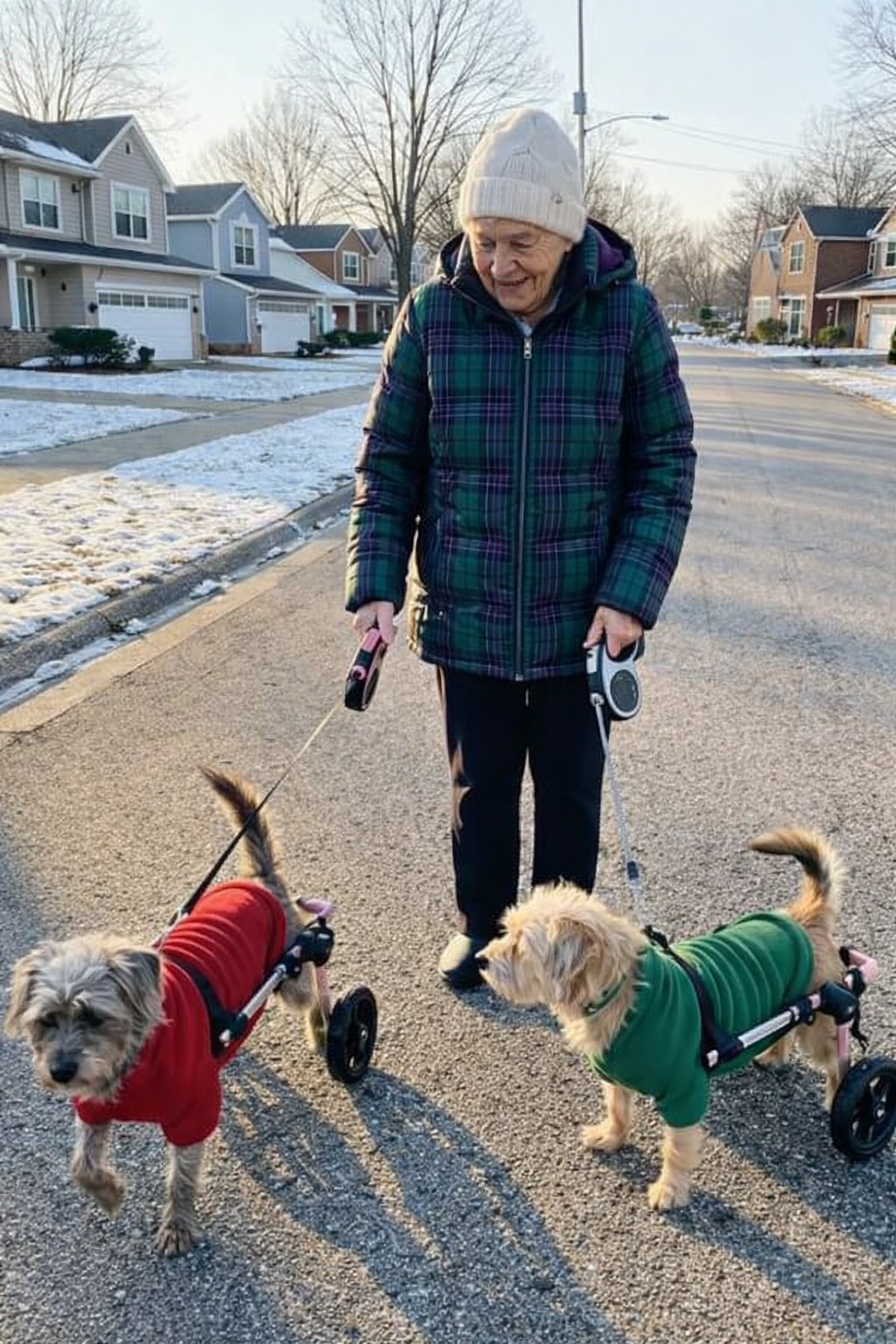 I was on my usual walk when a neighbor decided my rescue dogs didn’t belong on our street. At 75, I’ve learned to recognize moments that matter, and this was one of them. Pearl and Buddy don’t walk like other dogs—they roll along on tiny wheels, tails wagging with pure joy. Most people smile when they see them. That day, one neighbor reacted with disgust and told me to get rid of them. She didn’t just insult my dogs—she underestimated me.