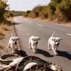 In a daring feat, a brave individual rescued a helpless dog from the clutches of an aggressive python,