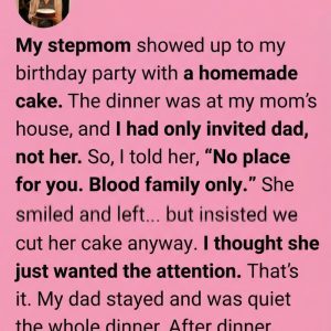 My stepmother arrived at my birthday dinner carrying a homemade cake I hadn’t asked for. The celebration was being held at my mom’s house, and I had…