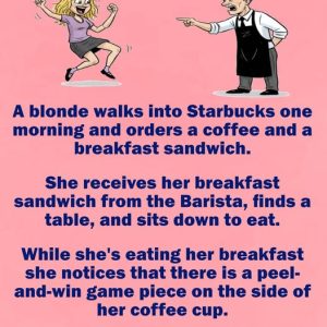 A blonde walks into Starbucks one morning and orders a coffee and a breakfast sandwich. She receives her breakfast sandwich from the Barista, finds a table, and…